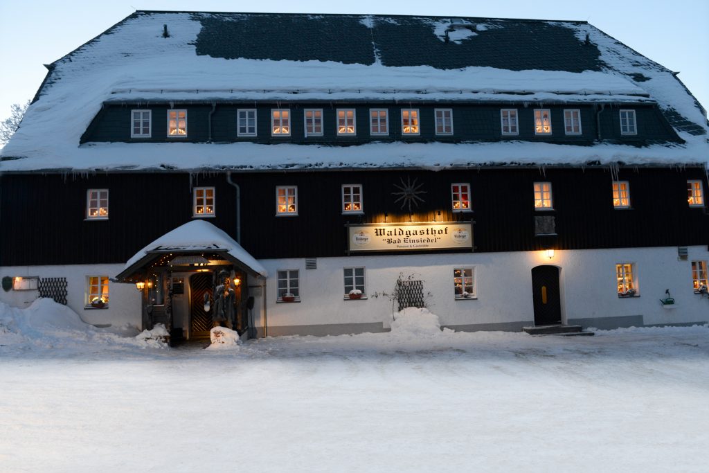 Mitten in idyllischer Waldlage, direkt auf dem Erzgebirgskamm liegt in ca 750m Höhe der Waldgasthof Bad Einsiedel. Wie bieten eine direkte Anbindung im Sommer an zahlreiche Wanderwege und im Winter an die Skiloipen. der Waldgasthof bietet Ihnen 50 Sitzplätze in drei verschieden gestalteten Gasträumen, die zum Verweilen einladen. Pensionsgäste unseres Hauses dürfen sich auf liebevoll eingerichtete Zimmer im Landhausstil freuen.